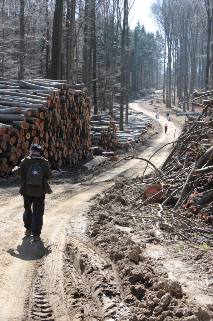 Also, liebe Wander- und Naturfreunde: Seid doch froh, dass auf euren Wegen durch den Wald kein Wald mehr im Weg steht. Das alles passiert doch nur zu eurer eigenen Sicherheit! (Man kann die amtliche Interpretation solcher Machenschaften mit den penetrant verlogenen Schildern in Bankfilialen und anderswo vergleichen: „Diese Filiale wird zu Ihrer Sicherheit videoüberwacht.“ – Danke schön, aber wir haben nicht darum gebeten …).