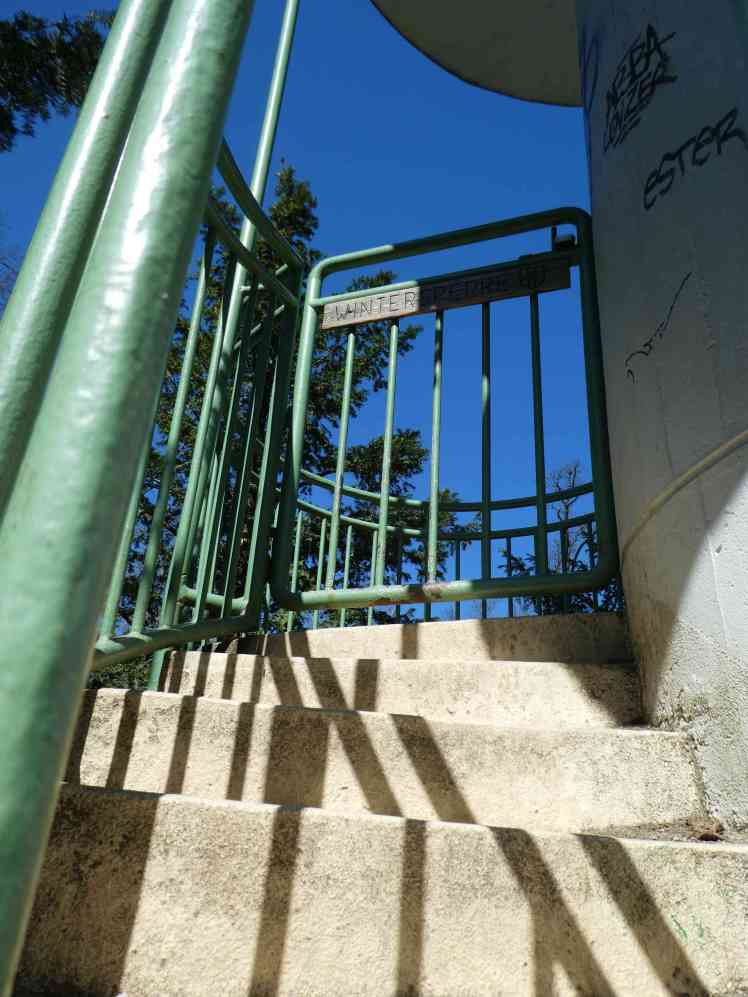 Ein Aufstieg auf die 31 m hohe Aussichtsterrasse bleibt allerdings verwehrt, weil man in der augenblicklich problematischen Zeit sicherheitshalber gleich einmal die Wintersperre nicht aufgehoben hat.