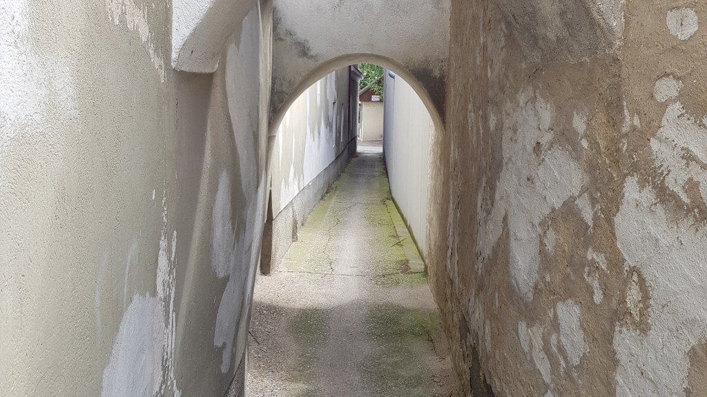 Durch einen kleinen Durchschlupf gelangt man zum Josefspark …