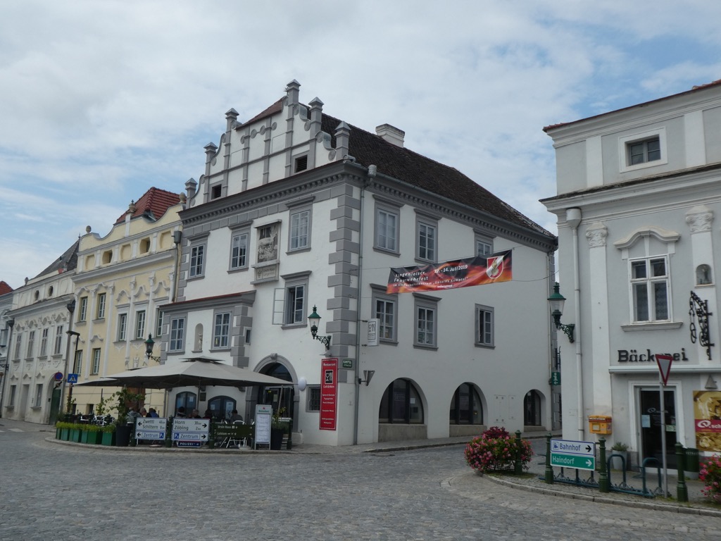 Auf Bahnstraße Nr. 6 befindet sich der Harrerhof, eines der wenigen Gebäude der Stadt, die im Stil der Renaissance errichtet wurden. Der Innenhof des Hauses diente 1957 als Kulisse für den Heimatfilm „Die Winzerin von Langenlois“ mit Paul Hörbiger und Susi Nicoletti.
