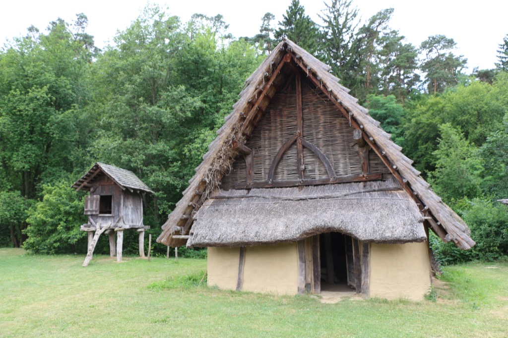 Vom Ruinen-Rundwanderweg bringt uns ein sanft bergab führender Waldweg dann in die Ortschaft Elsarn im Straßertal, wo wir Gelegenheit haben, das Freilichtmuseum Elsarn mit seinem nachgebauten Germanengehöft zu besuchen.