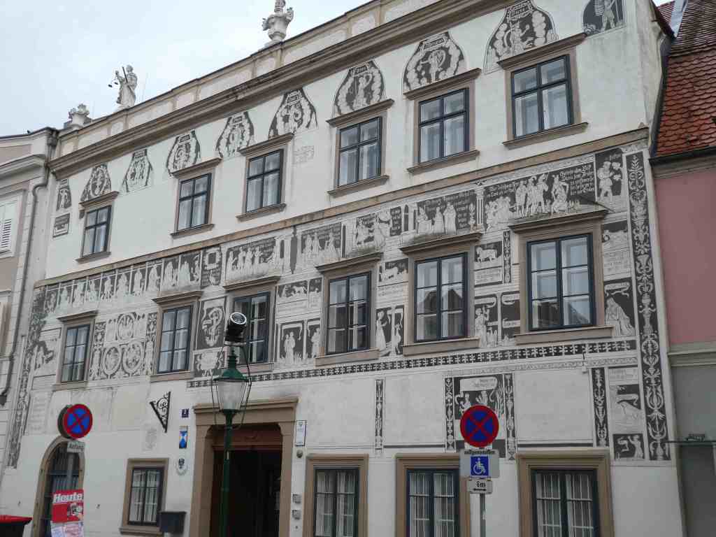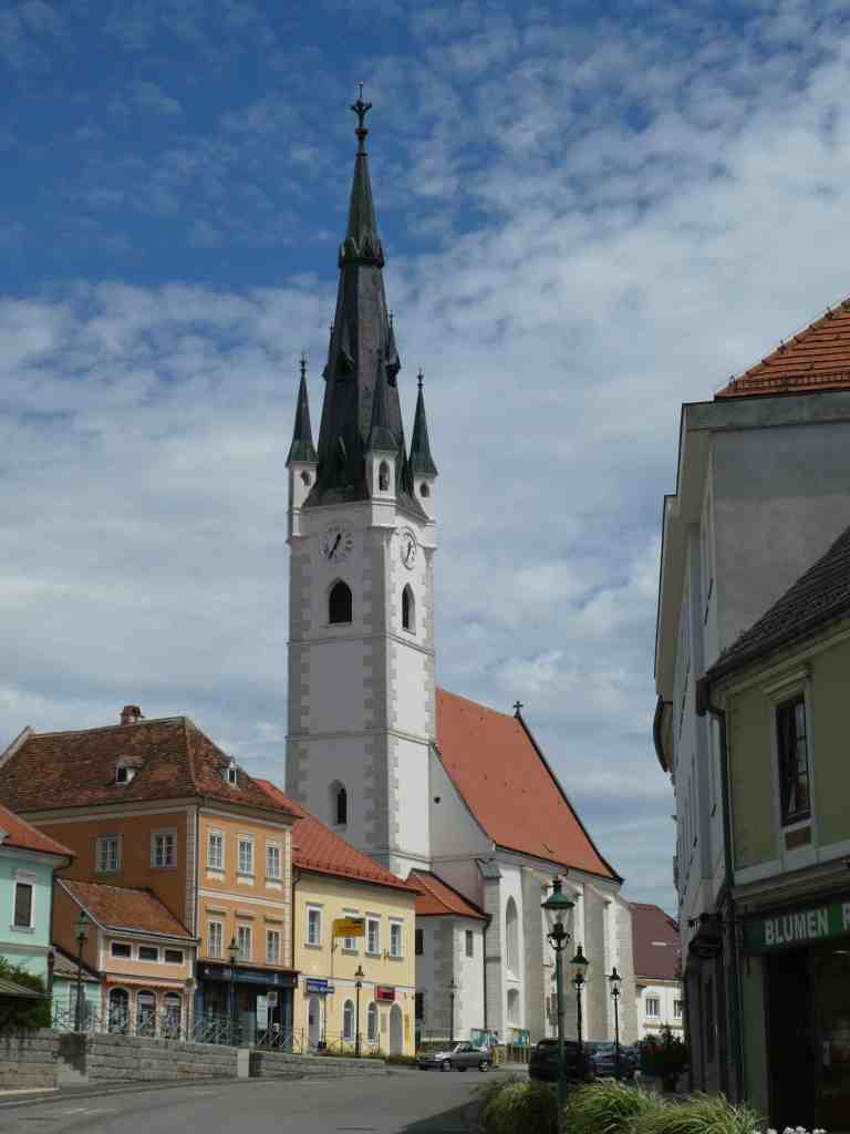 Kurz danach erreichen wir das Kunsthaus – ebenso ein Gebäude mit vielen Gesichtern. 1590 als Sitz der Familie Puchheim errichtet, wurde es 1657–1872 den Piaristen zur Einrichtung ihrer Schule überlassen. Danach war das Gebäude bis 1960 ein öffentliches Gymnasium. 1988 richtete man rund um den Renaissance-Arkadenhof ein Zentrum für Kultur und Kunst ein, in dem u. a. Veranstaltungen von „Allegro Vivo“ und „Szene Waldviertel“ stattfinden. Zudem gibt es hier Wohn-, Arbeits- und Verpflegungsmöglichkeiten. Ein Blick in die seit 1658 bestehende Piaristenkirche nebenan ist obligatorisch: Das Altarbild des Kirchenpatrons, des heiligen Antonius, schuf 1777 Martin Johann Schmidt, der „Kremser Schmidt“.