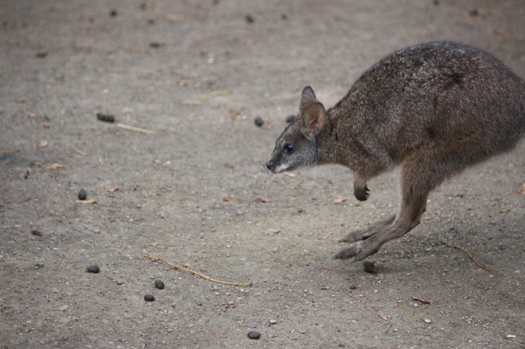 Bei unserer Wanderung 21 – Kängurus im Wienerwald aus unserem neuen Buch Wandern mit Kindern haben wir beim ersten Mal nicht schlecht geschaut, als wir beim Schutzhaus Am Harzberg die Hinweistafel „Zu den Kängurus über die Terrasse“ gelesen haben. Von wegen „There are no Kangoroos in Austria“ … folgt man diesem Pfeil, so gelangt man zu einem großen Gehege und wird eines Besseren belehrt. Da tummeln sich nämlich sowohl Parma- als auch Rotnackenkängurus und hüpfen aufgeregt in der Wiese umher, wenn Besucher ihnen Erdnüsse zuwerfen. Das gesunde Futter kann man übrigens am Eingang bei einem Automaten erstehen. Aufmerksame Beobachter werden mit ein wenig Glück auch ein Baby-Känguru aus einem Beutel lugen sehen, da Familie Zamazal diese possierlichen, vom Aussterben bedrohten Tierchen hier auf dem Harzberg züchtet.