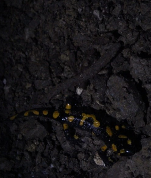 Das passt gut, denn unseren ersten Feuersalamander in freier Natur haben mein Sohn und ich in der Ötscher-Tropfsteinhöhle (übrigens auch ein schöner Familienausflug!) gesehen.