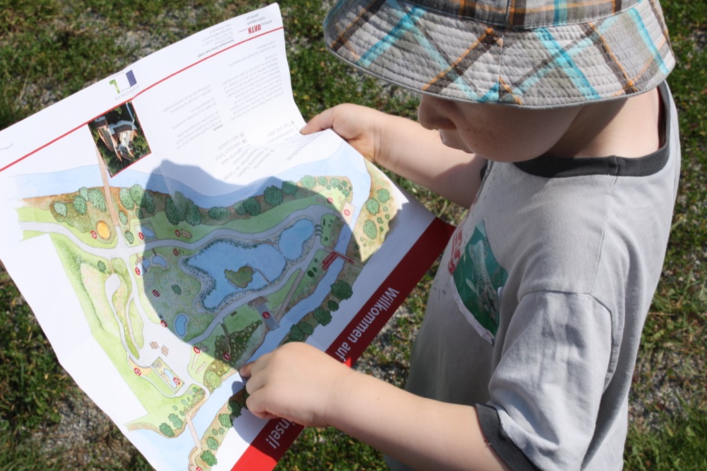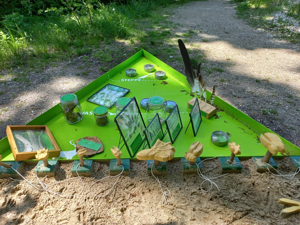 Was mich neben den wirklich großartigen, innovativen und kindgerechten Stationen noch begeistert hat, war der Versuch, für Menschen mit besonderen Bedürfnissen an mehreren Stationen ertastbare Übersichtspläne und drehbare Infotafeln mit 3D-Tiermodellen wie dem Ziesel und der Europäische Sumpfschildkröte anzubieten. Audiotexte liefern zusätzlich über spezielle QR-Codes die Beschreibung der Lebewesen und Hintergrundwissen. Das ist doch einmal ein guter Ansatz.