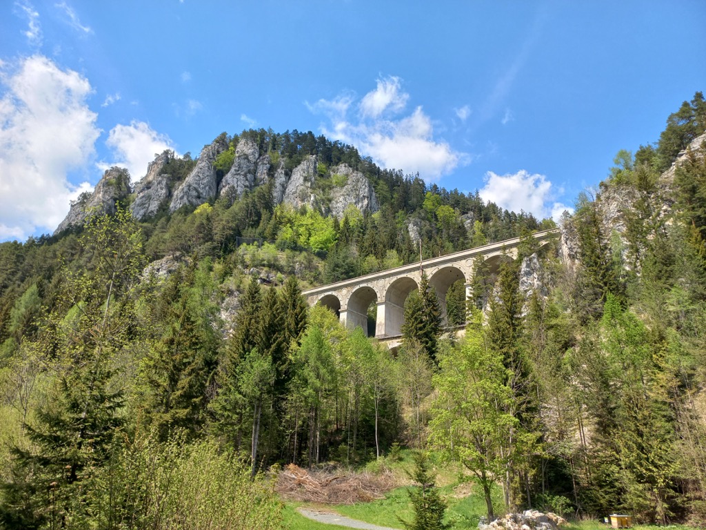 Der Semmering zählt zu meinen Lieblingswandergebieten – und der Semmering-Bahnwanderweg bietet die idealen Voraussetzungen für eine Familienwanderung. Das beginnt schon bei der spannenden Anreise mit der Eisenbahn über die kurvenreiche Trasse, die uns über Viadukte und durch enge Tunnels führt. Die größtenteils schmale Wege bieten immer wieder tolle Ausblicke auf die als UNESCO-Weltkulturerbe geschützte Landschaft. Interessante Infotafeln, für die es auch einen Audioguide kostenlos zum Herunterladen gibt, erzählen uns von der Entstehung der Semmeringbahn. Und obwohl wir uns auf über 900 m Höhe bewegen, führen die Wege großteils bergab, mit nur kurzen Aufstiegspassagen.