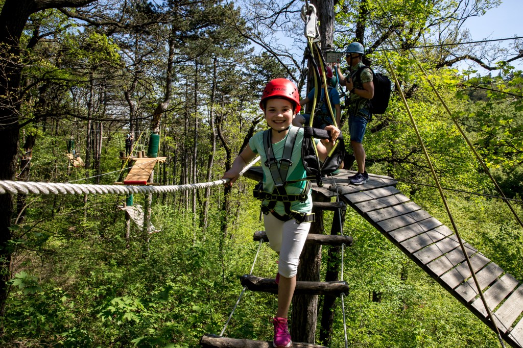 Eine nette kleine Wanderung, die genau diese Ansprüche erfüllt, ist die Route 23 – Zwischen Kahlenberg und Leopoldsberg aus unserem Buch Wandern mit Kindern. Bei dieser 6,5 km langen, beschaulichen Hügelwanderung werden insgesamt ca. 320 m Höhenunterschied überwunden. Nach dem Aufstieg lockt dann schon die versprochene Attraktion: der Waldseilpark der Erlebniswelt Kahlenberg! Nach einer kurzen Einführung durch erfahrene Trainer stehen Abenteuerlustigen 17 spannende Parcours in drei unterschiedlichen Schwierigkeitsgraden zur Verfügung, um ihr Klettertalent unter Beweis zu stellen. Für jüngere Geschwister gibt es zwei kostenlose Wichtelparcours.