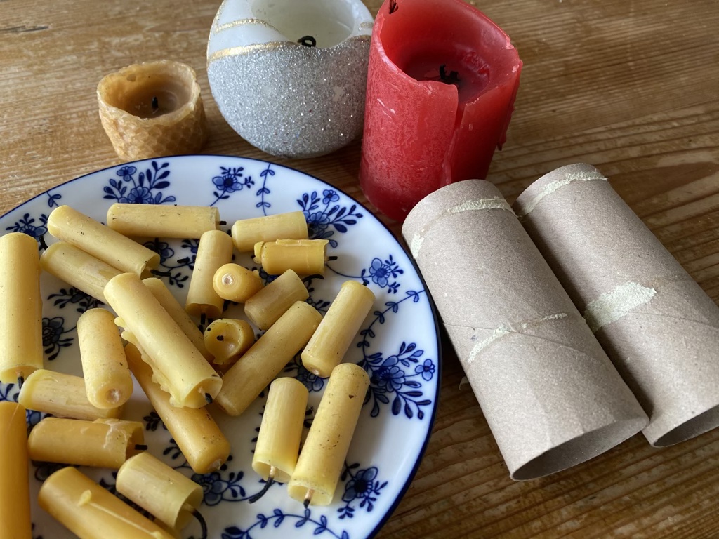- Wachsreste (Kerzen vom Christbaum oder Adventkranz …)
