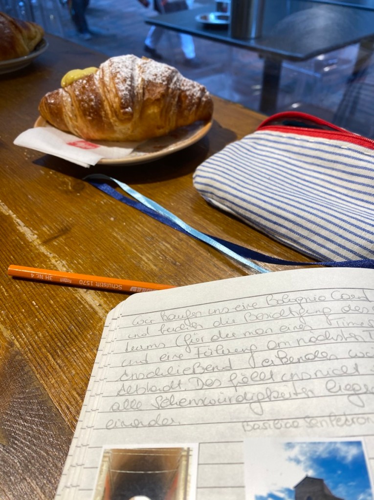 Bevor wir aber den wunderschönen alten Friedhof von Bologna besuchen, hier ein kurzer Abriss der eineinhalb recht regnerischen Tage, die uns quer durch die Stadt und schließlich dorthin führten. Frühstücke wie immer mit Croissant/Cornetto/Brioche und Cappuccino im Eataly, dann noch einmal ein Besuch (diesmal aber ein ausführlicher) in der wunderbaren Basilica Santuario Santo Stefano, die eigentlich aus mehreren Kapellen, Gewölben, Innenhöfen, Gruften, einem Nachbau vom Grab Jesu in Jerusalem und einem interessanten Museum besteht – Frühstück und Kirchengelände siehe oben.