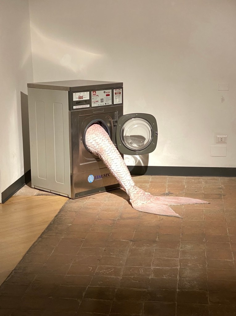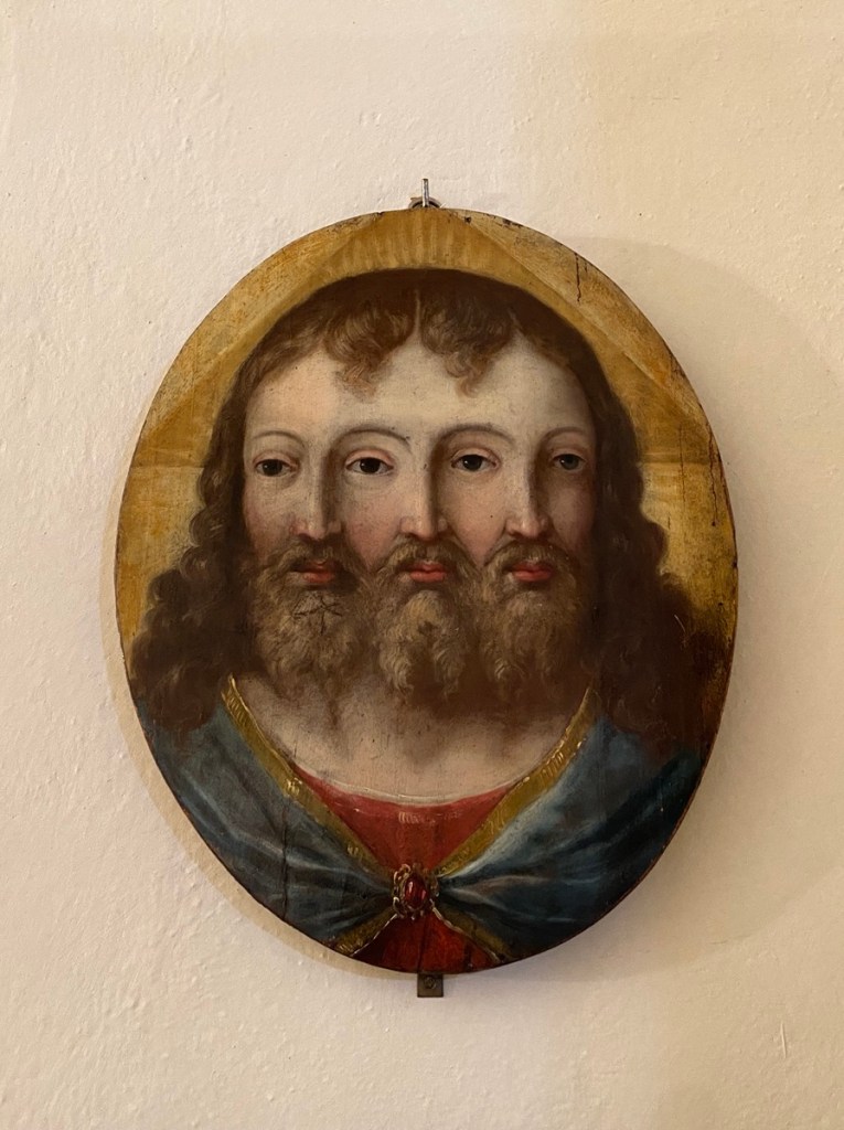 Unten ein paar Anblicke, die wir auf unseren Wegen aufgeschnappt haben: Meerjungfrauenkunst in einer Galerie, Straßenkunst aus der Hölle und eine seltsame Dreifaltigkeit in der Kirche.