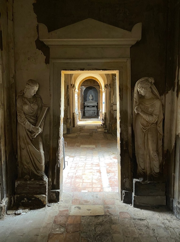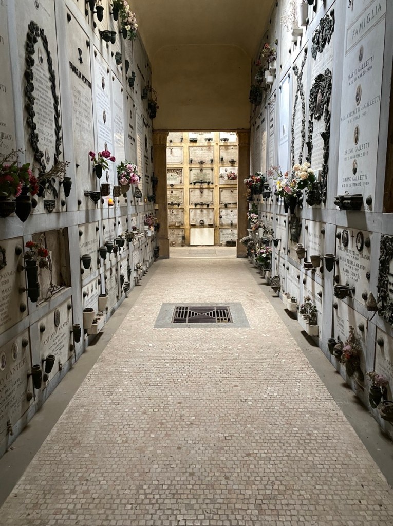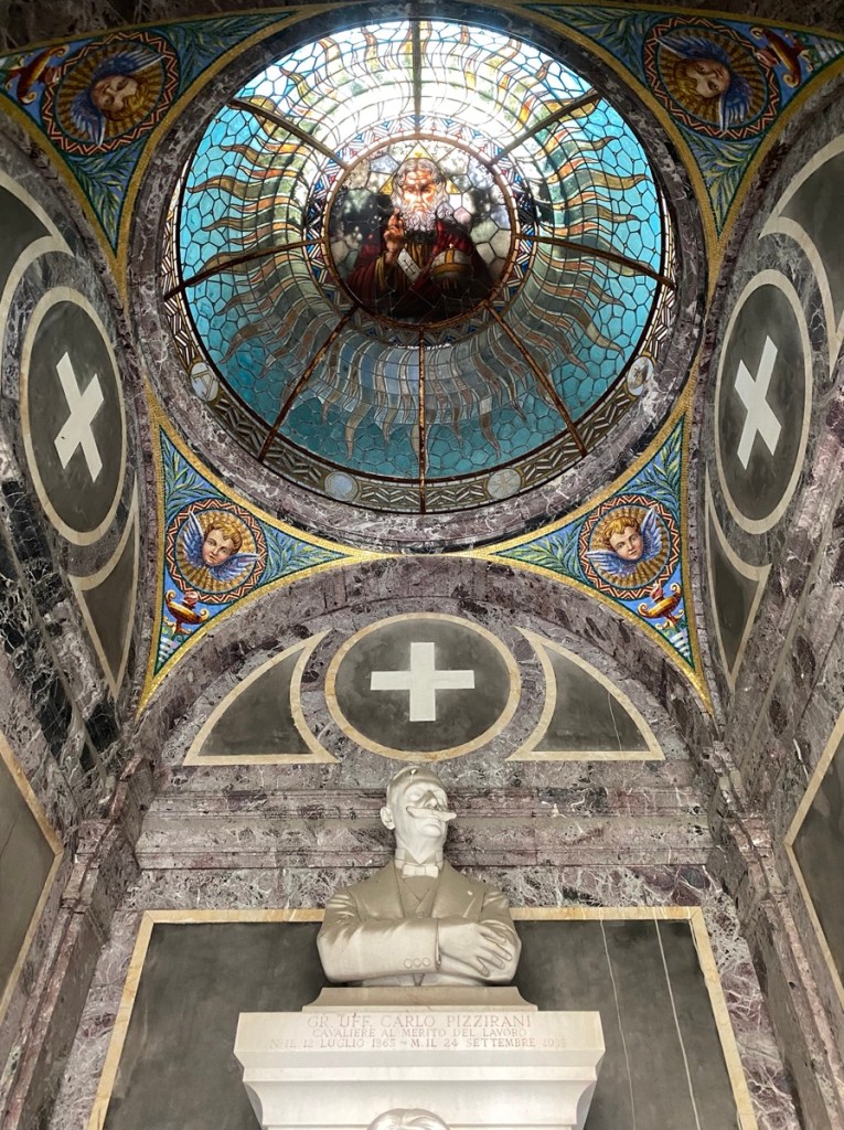 Bis dahin bewundern wir Sarkophage, wunderschöne Engelsstatuen, Statuengruppen, Glaskuppeln, Mosaike und die unzähligen anderen Schätze, die der Cimitero zu bieten hat.
