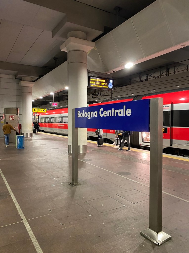 Über den Rest des Florenz-Tagesausflugs breiten wir lieber den Mantel des Schweigens. Was soll man über Pizzaschnitten, lieblose Aperolspritzer und die endlose Warterei am Bahnhof schon groß erzählen? Kurz und gut: Wir sind froh, dass wir abends wieder in Bologna sein dürfen – und in unserer Lieblings-Trattoria noch einen Tisch kriegen, für ein großartiges Abschluss-Abendessen samt Rotwein.
