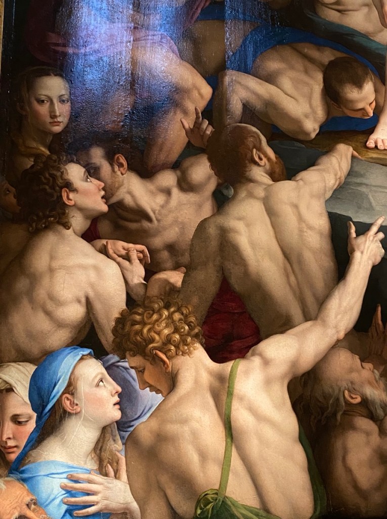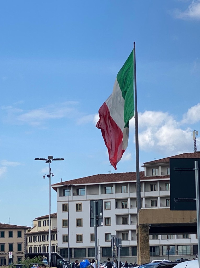 Was tut man am letzten Tag eines Stadtbesuchs, wenn man nicht von Abschiedsschmerz und Melancholie ergriffen werden will? Richtig: Man besucht schnell eine andere Stadt, die man auch einmal liebgewonnen hat – in diesem Fall Florenz. Also machen wir uns am frühen Vormittag auf den Weg zum Bahnhof und warten dann tief im Untergrund von Bologna Centrale auf den Superschnellzug nach Firenze (nachdem wir das Hindernis des Kartenkaufs mit Hilfe eines Privatanbieters in der überlaufenen Bahnhofshalle überwunden haben). Der Zug ist wirklich schnell, aber von der (vermutlich) schönen Landschaft zwischen Bologna und Florenz sehen wir leider nichts, weil wir hauptsächlich im High-Speed-Tunnel unterwegs sind. Als wir am Ziel eintreffen, ist der Himmel blau und alles sieht harmlos aus …