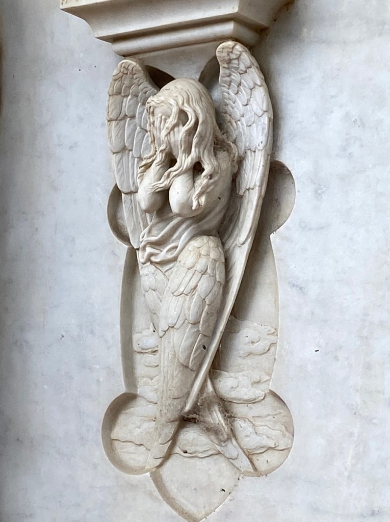 Und: Engel und andere leidende Wesen findet man hier in großer Zahl (an den Wänden, nicht im Saal).