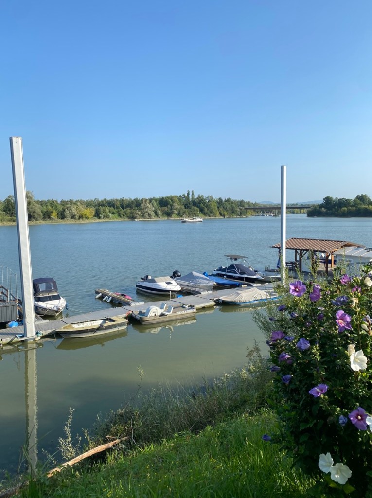 Durch den Ort und seine Ausläufer geht es hinunter an einen Donaualtarm, wo die Bootseigner stolz auf ihre Fischereierfolge sind, auf einem Weg durch die Au weiter …