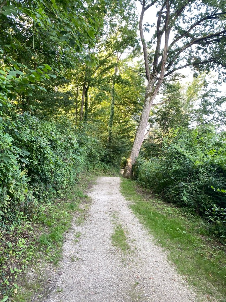 In Strengberg besuche ich die schöne Kirche des Ortes, marschiere dann – der Markierung folgend – an der Straße entlang, aber auf einem gemütlichen Gehsteig, kaufe mir im Supermarkt Pflaster und ein kühles Erfrischungsgetränk, biege dann wieder in die Natur ab, um nach einigen Kilometern auf und ab wieder die Bundesstraße zu erreichen. Und an deren Rand hatsche ich dann wirklich lang dahin, bis mir auffällt, dass die Abzweigung schon lang hätte da sein müssen (andere Wanderbuchautoren erwähnen auch, dass sie kaum zu sehen ist). Ich nehme also die nächste schmale Straße nach rechts, gehe ein Stück bergab, erfahre von einer freundlichen Bauersfrau, dass der Jakobsweg gleich um die Ecke ist, finde ihn auch sofort und spaziere auf ihm Richtung Donau hinab.