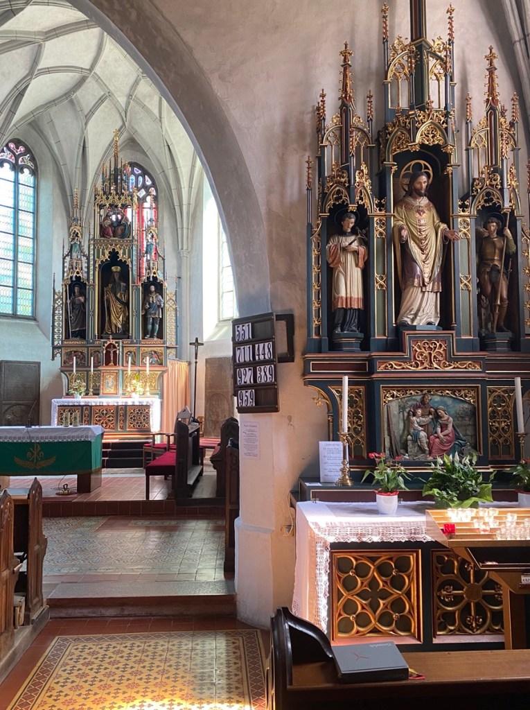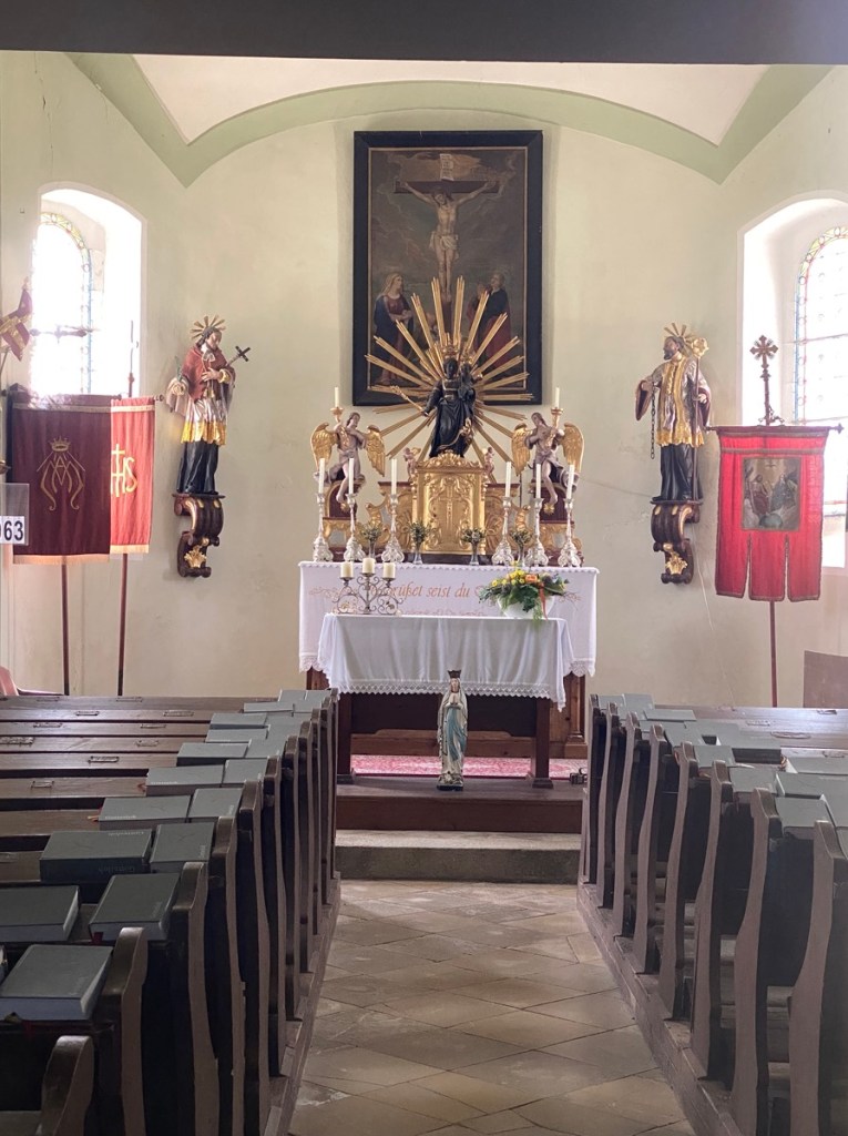 Weil wir uns mit dem Schloss aufgehalten haben, vergessen wir völlig, dass wir eigentlich auch die Kirche des Ortes aufsuchen wollten … also wieder einen Stempel verpasst.