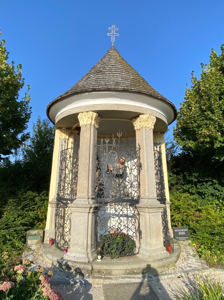 Nach dieser 16. Etappe weiß ich wirklich nicht, ob ich auf dem österreichischen Jakobsweg weiterpilgern will und werde. Schließlich habe ich ja ganz am Anfang, in Wolfsthal, ins Pilgerbuch geschrieben „Probier ma’s“. Und probiert habe ich es. Sicher weiß ich nur, dass ich NIE MEHR zu den Hundstagen im August, bei mehr als 30 Grad, eine Wanderung egal welcher Länge antreten werde.
