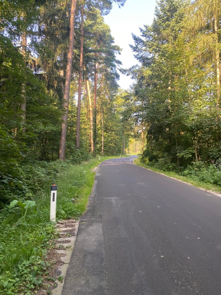 Nach einem kurzen Schotterweg biegen wir in eine angenehme, schattige Waldstraße ein, die so gut wie nicht befahren ist und relativ eben dahingeht.