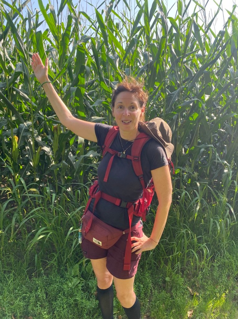 Der Mais wächst hoch und überragt sogar meine überragende Frau.