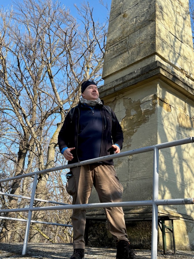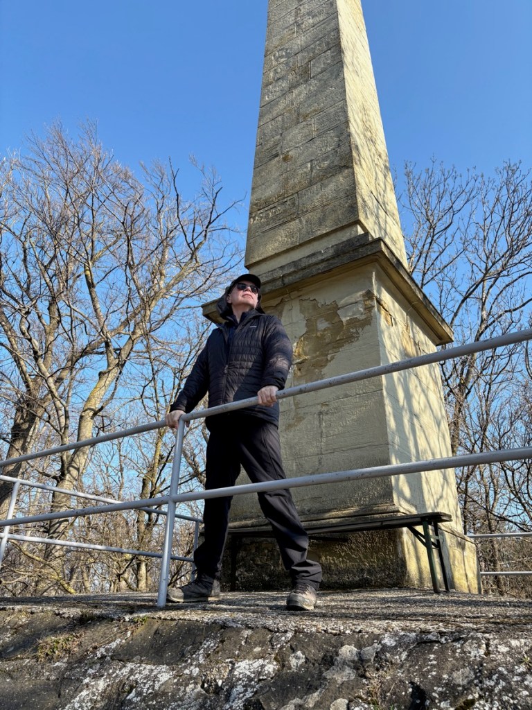 Warum wir dieses Denkmal bisher ausgelassen haben, verstehen wir heute selber nicht mehr. Der Wegweiser „Zum Obelisken“ hat uns ja schon viele Jahre lang fasziniert … Jedenfalls ließ besagten Obelisken ebenfalls Fürst Johann Josef von Liechtenstein errichten, dem wir neben vielem anderen auch die Burg Greifenstein verdanken und der Anfang des 19. Jahrhunderts rund um das Jagdschloss Hadersfeld einen Naturpark gründete. Hier kann man sich hervorragend in Feldherrenpose inszenieren (noch dazu mit der Rommel-Sonnenschutzkappe, auf die der Autor dieses Beitrags nicht mehr verzichten mag) und so tun, als würde man gleich zum Maschinengewehr greifen.